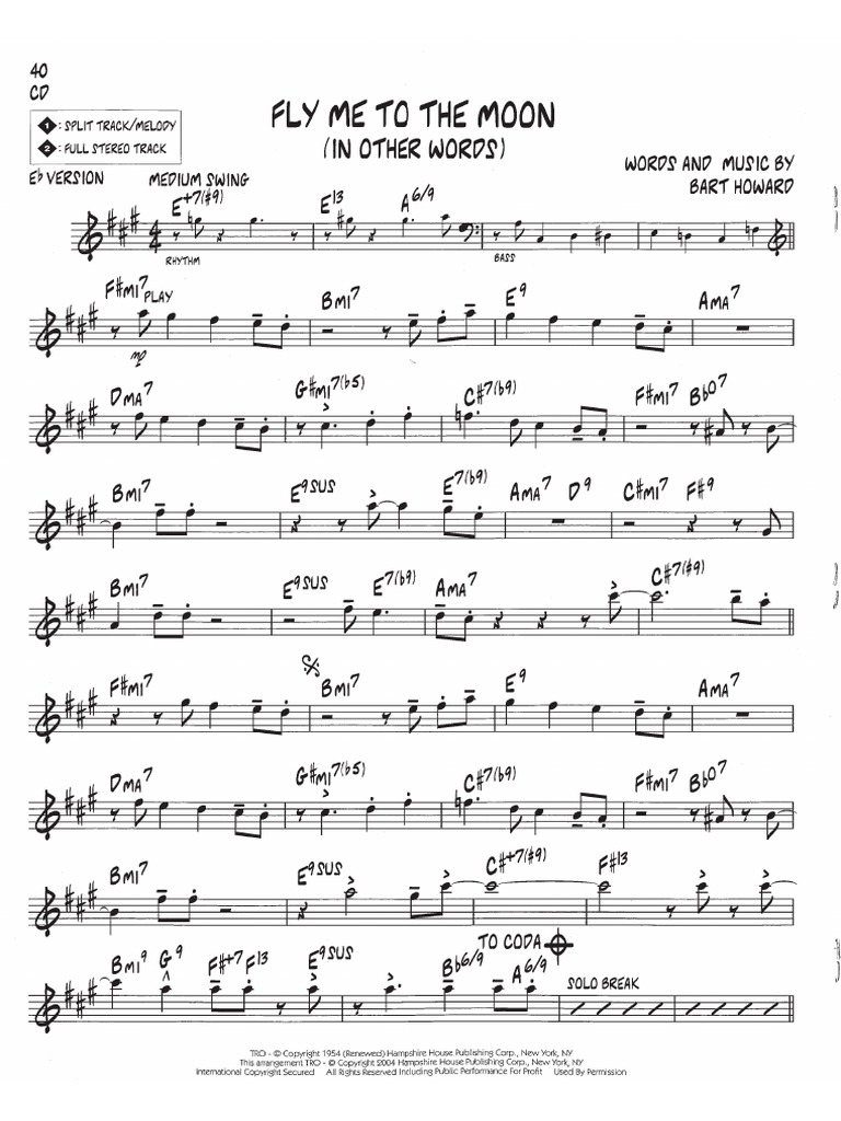 Fly Me To The Moon In Other Words Sheet Music Frank Sinatra Alto Sax Solo