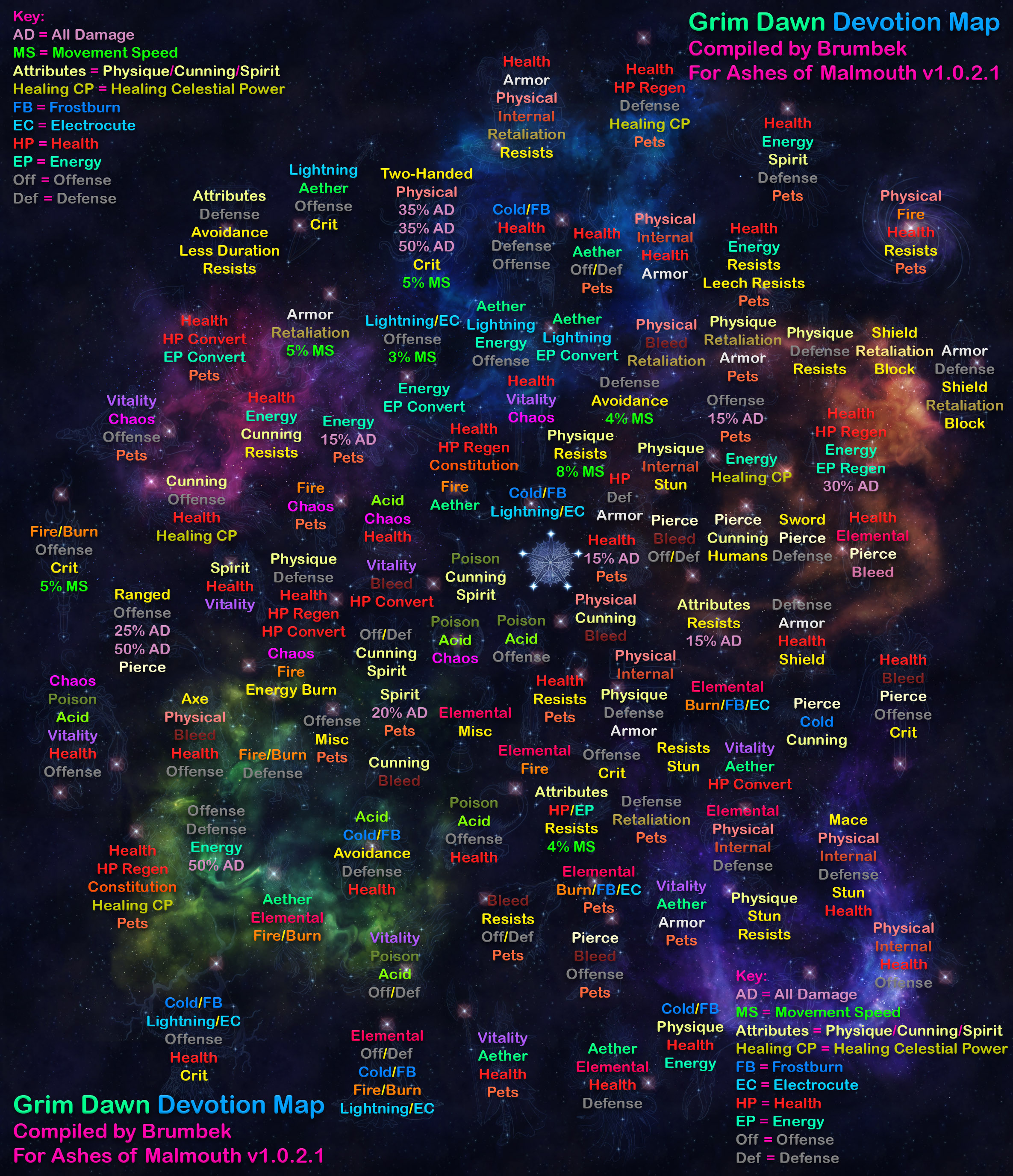 Visual Devotion Map With Color Coded Text For Easy Build Charting Grimdawn