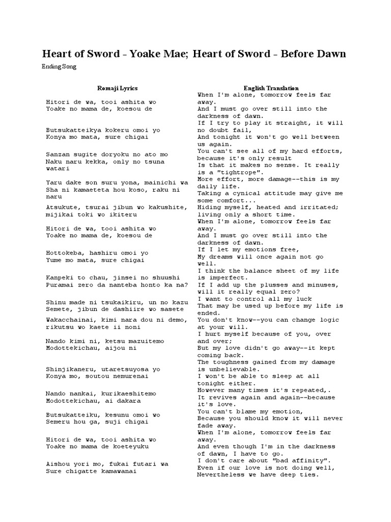 Anime Lyrics Dot Com Heart Of Sword Yoake Mae Heart Of Sword Before Dawn T M Revolution Jpop