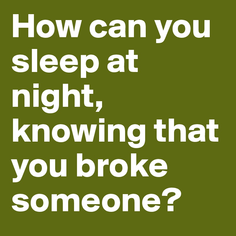 How Can You Sleep At Night Knowing That You Broke Someone Post By Larajt On Boldomatic