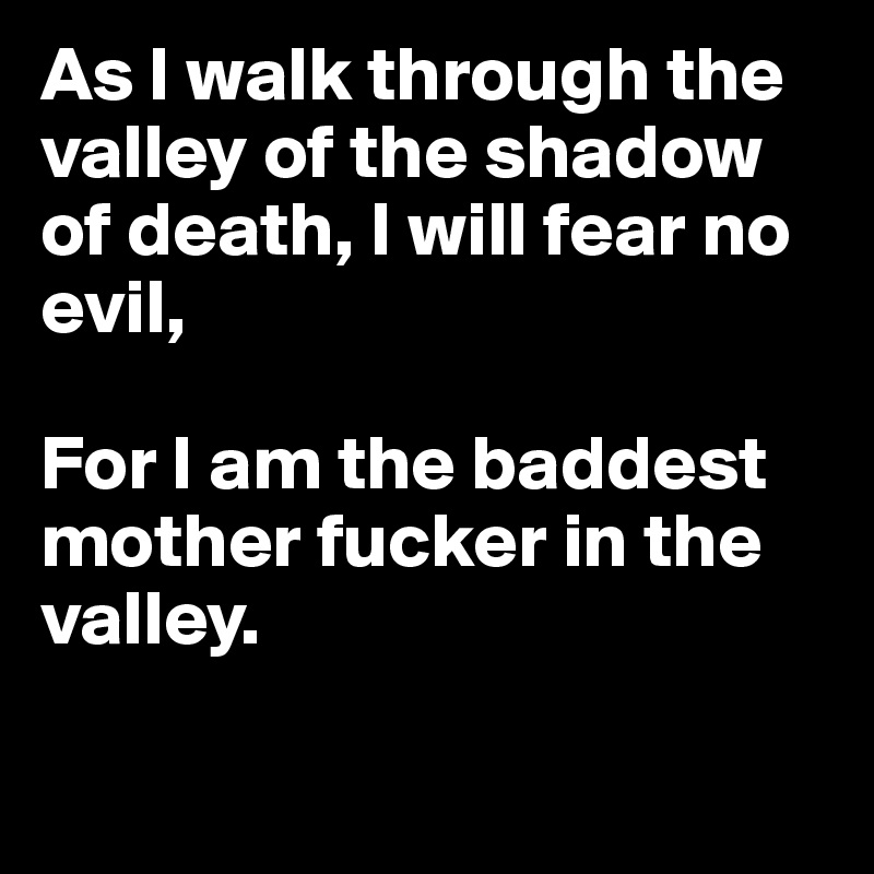As I Walk Through The Valley Of The Shadow Of Death I Will Fear No Evil For I Am The Baddest Mother Fucker In The Valley Post By Zzzz On Boldomatic
