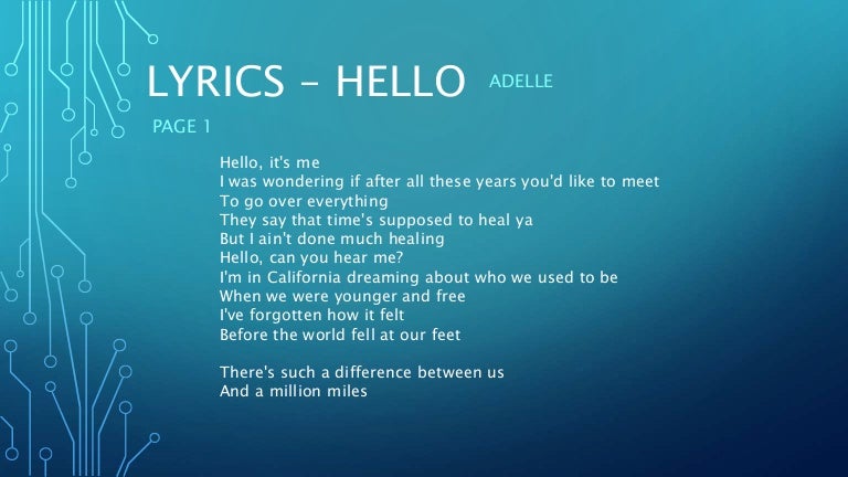 Hello Lyrics Latest Hello Lyrics By Adele Adkins Greg Kurstin
